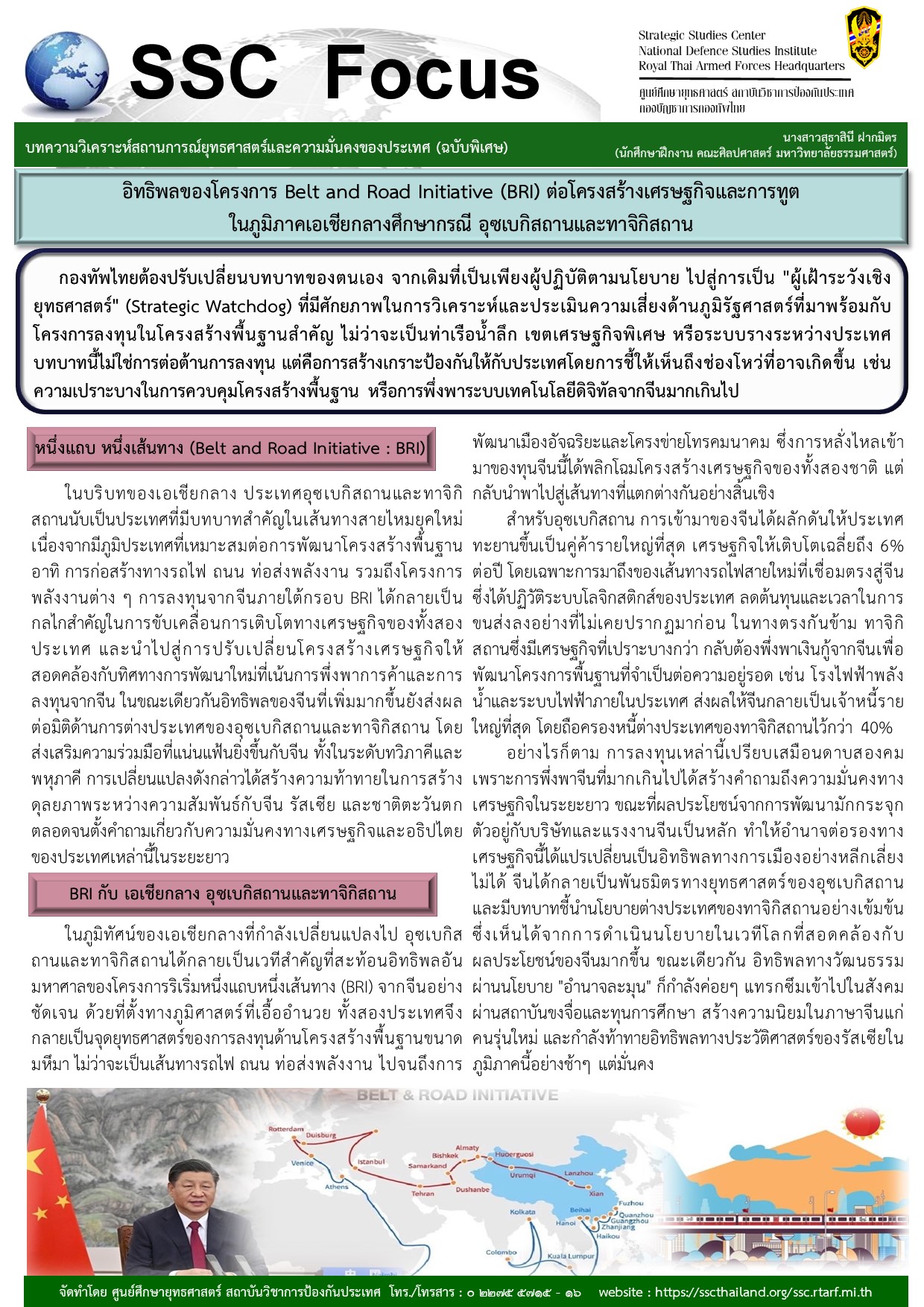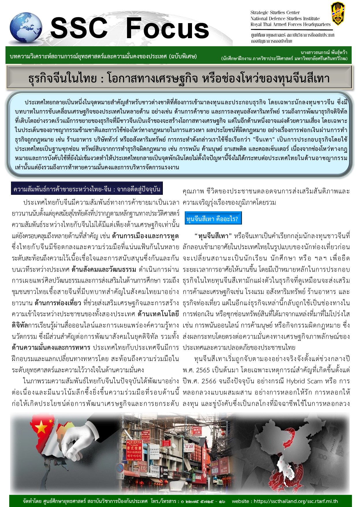 ผลงานทางวิชาการ [ เอกสารวิเคราะห์สถานการณ์ยุทธศาสตร์และความมั่นคง (Thailand SSC Focus)]