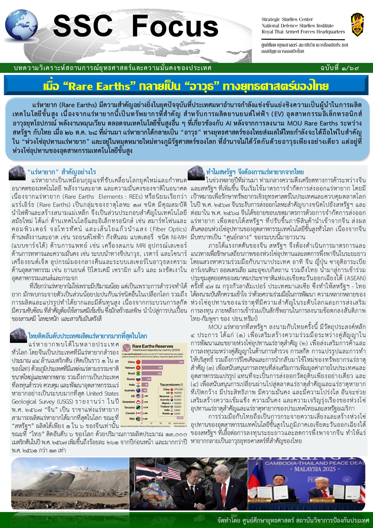 บทความวิเคราะห์สถานการณ์ยุทธศาสตร์และความมั่นคงของประเทศ ฉบับที่ ๑/๖๙