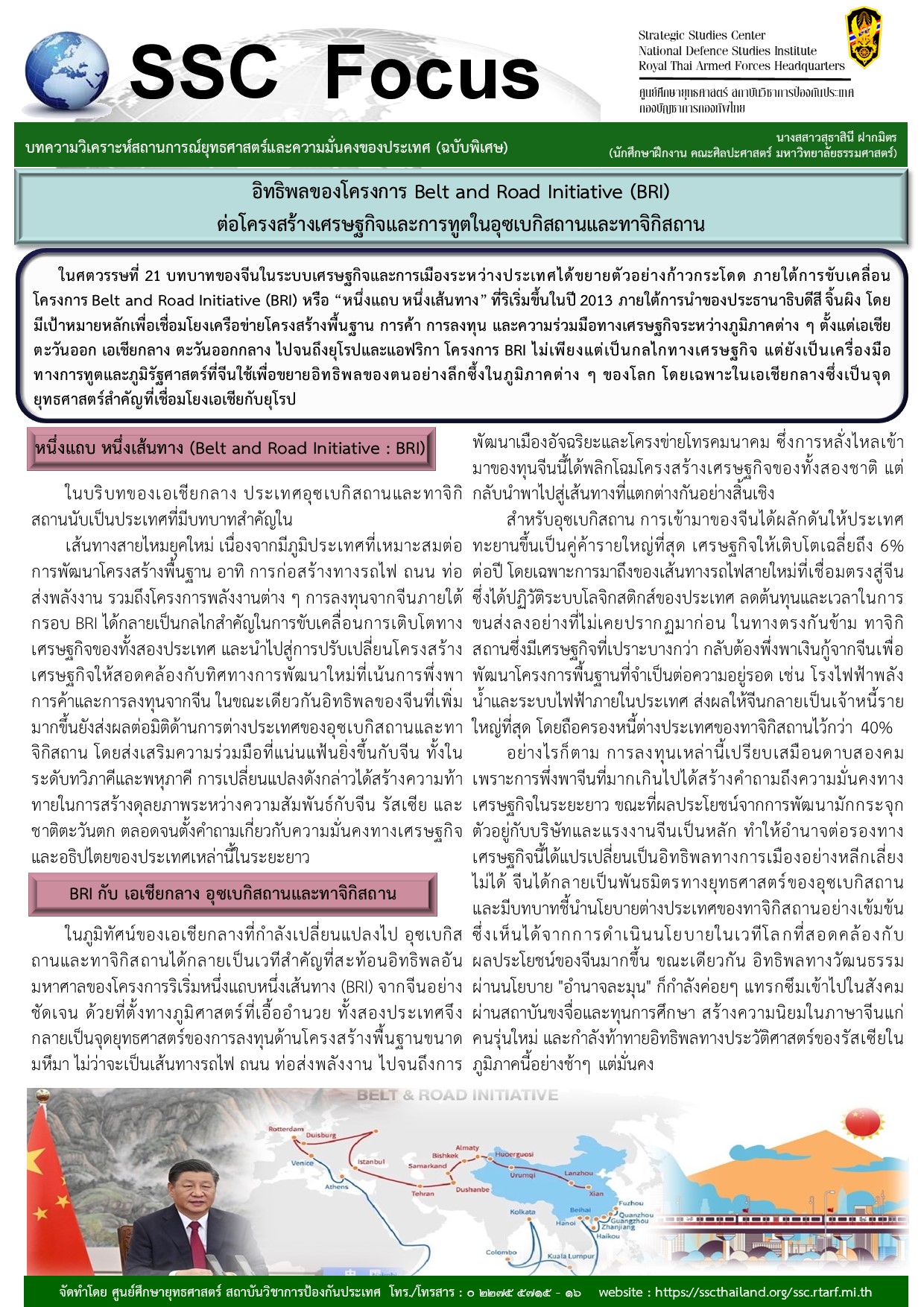 ในศตวรรษที่ 21 บทบาทของจีนในระบบเศรษฐกิจและการเมืองระหว่างประเทศได้ขยายตัวอย่างก้าวกระโดด ภายใต้การขับเคลื่อนโครงการ Belt and Road Initiative (BRI) หรือ “หนึ่งแถบ หนึ่งเส้นทาง” ที่ริเริ่มขึ้นในปี 2013 ภายใต้การนำของประธานาธิบดีสี จิ้นผิง โดยมีเป้าหมายหลักเพื่อเชื่อมโยงเครือข่ายโครงสร้างพื้นฐาน การค้า การลงทุน และความร่วมมือทางเศรษฐกิจระหว่างภูมิภาคต่าง ๆ ตั้งแต่เอเชียตะวันออก เอเชียกลาง ตะวันออกกลาง ไปจนถึงยุโรปและแอฟริกา โครงการ BRI ไม่เพียงแต่เป็นกลไกทางเศรษฐกิจ แต่ยังเป็นเครื่องมือทางการทูตและภูมิรัฐศาสตร์ที่จีนใช้เพื่อขยายอิทธิพลของตนอย่างลึกซึ้งในภูมิภาคต่าง ๆ ของโลก โดยเฉพาะในเอเชียกลางซึ่งเป็นจุดยุทธศาสตร์สำคัญที่เชื่อมโยงเอเชียกับยุโรป