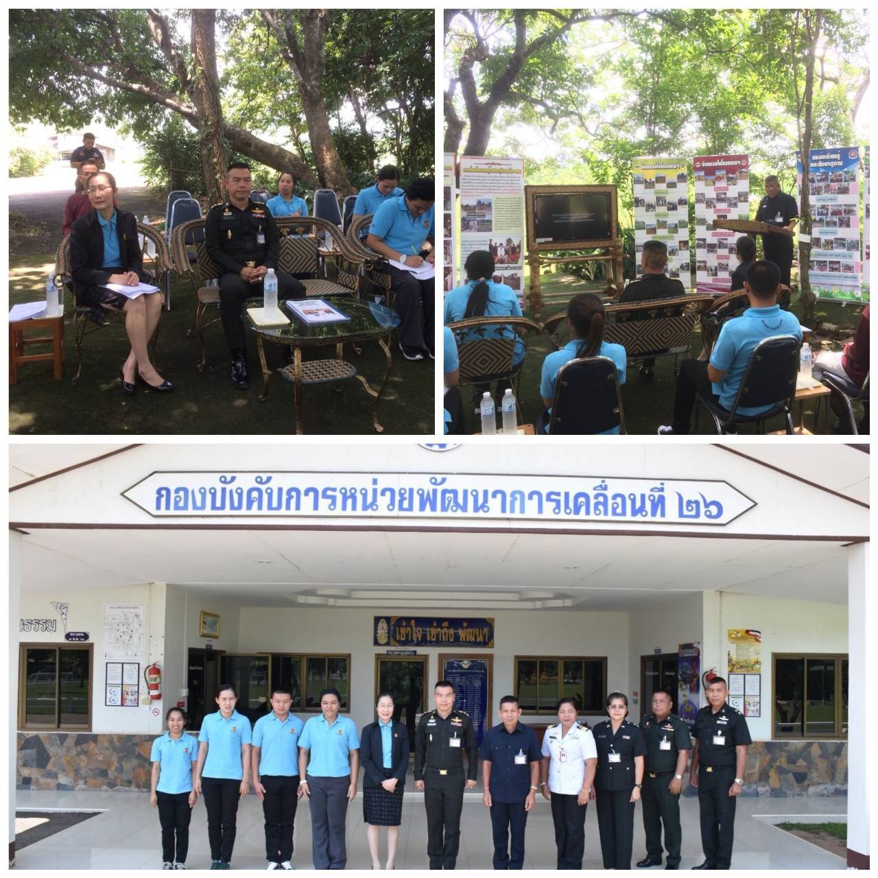หน่วยที่เกี่ยวข้องได้บรรยายสรุปการจัดโครงสร้างองค์กร บทบาท อำนาจหน้าที่ และภารกิจตามที่ได้รับมอบหมาย รวมทั้งความเป็นมาและการดำเนินงานศูนย์การเรียนรู้และหมู่บ้านเศรษฐกิจพอเพียง ปัจจัยความสำเร็จ และแนวทางการพัฒนา