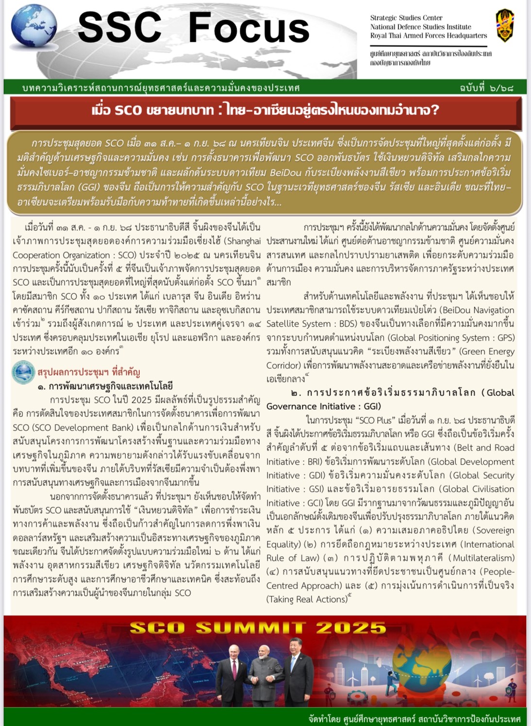 Video Advice for Strategic Studies Center. National Defence Institute, Thailand.
