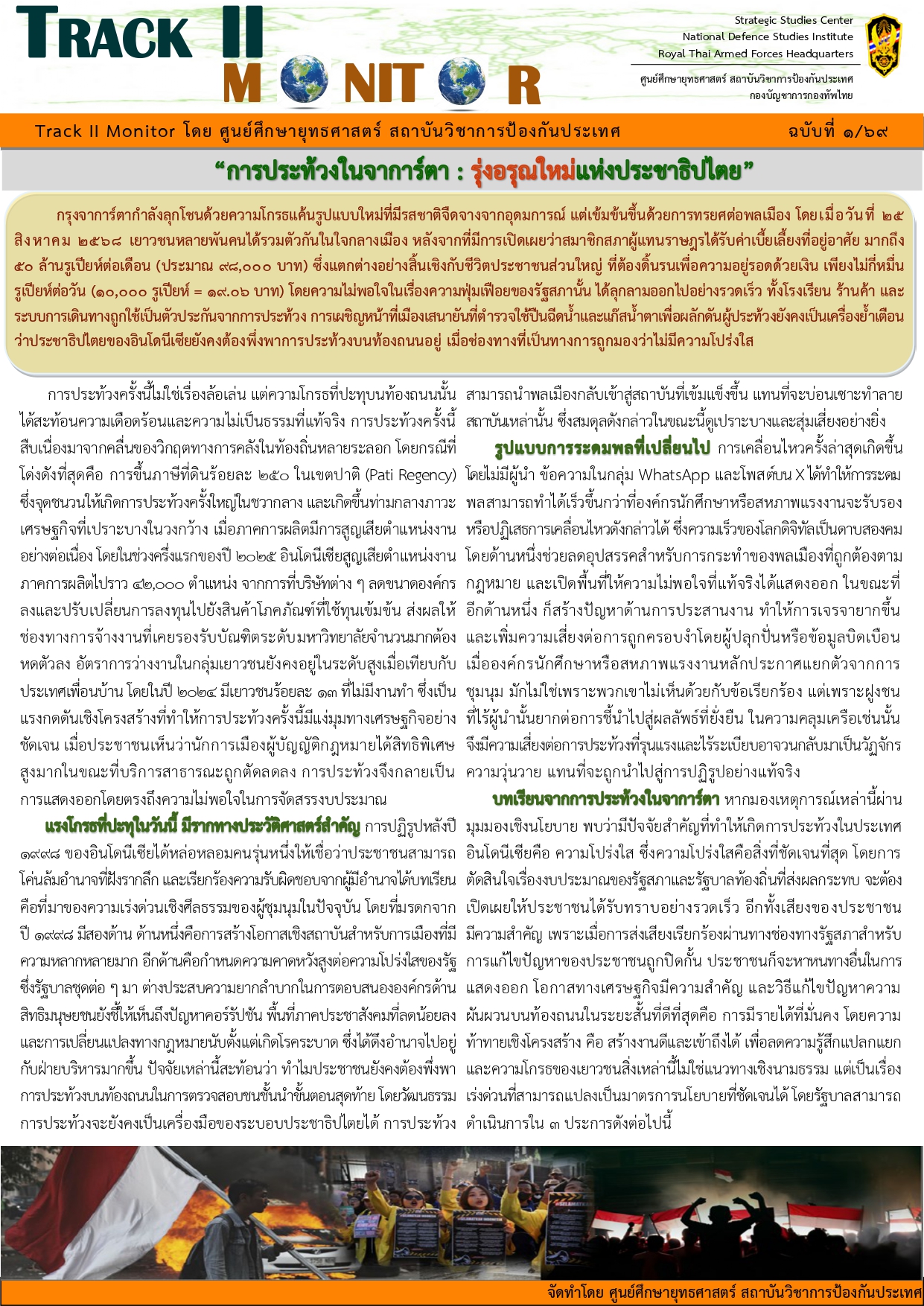 ผลงานทางวิชาการ [ บทความติดตามการวิเคราะห์สถานการณ์ด้านความมั่นคง (Track II Monitor)]